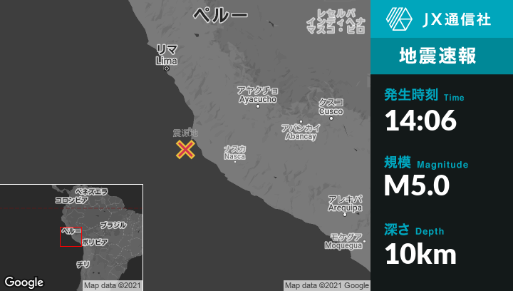 | 震源地 | ペルーのParacasから南南西58kmの地点 |