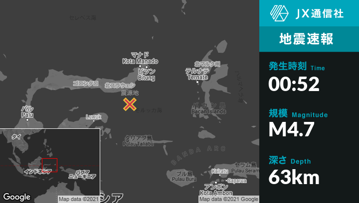 | 震源地 | インドネシアのGorontaloから東南東162kmの地点 |