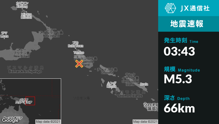 | 震源地 | パプアニューギニアのPangunaから西61kmの地点 |