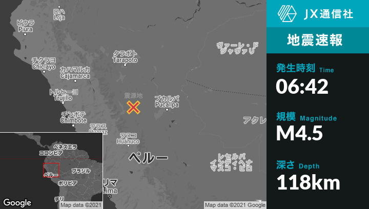 | 震源地 | ペルーのTocacheから東54kmの地点 |