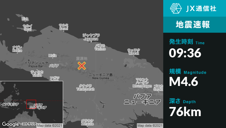 | 震源地 | インドネシアのAbepuraから南南西186kmの地点 |