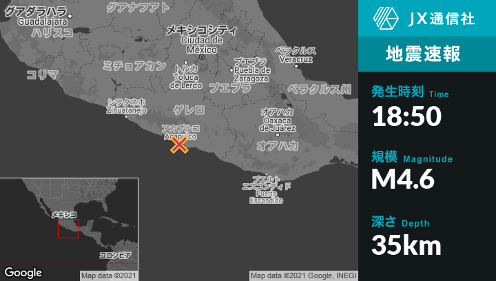 | 震源地 | メキシコのLos Órganos de San Agustínから南西4kmの地点 |