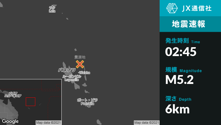 | 震源地 | バヌアツのPort-Olryから東北東85kmの地点 |