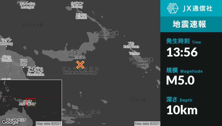 | 震源地 | パプアニューギニアのKimbeから南東136kmの地点 |