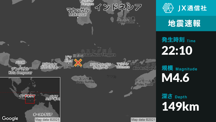 | 震源地 | インドネシアのKomodoから北33kmの地点 |