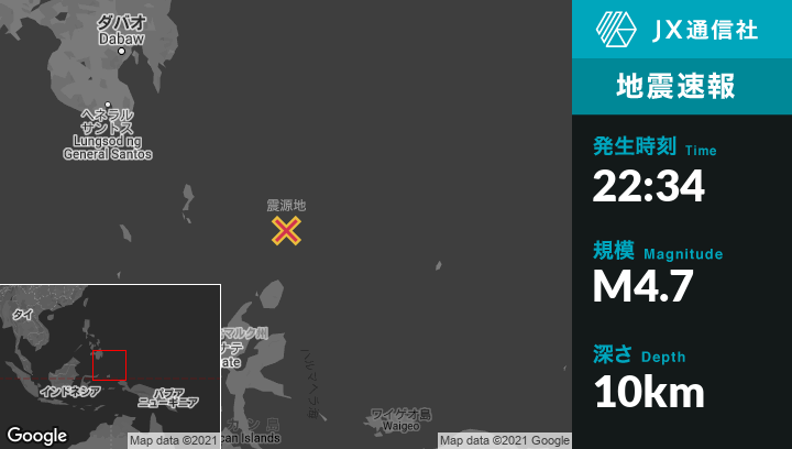 | 震源地 | インドネシアのTobeloから北北東236kmの地点 |