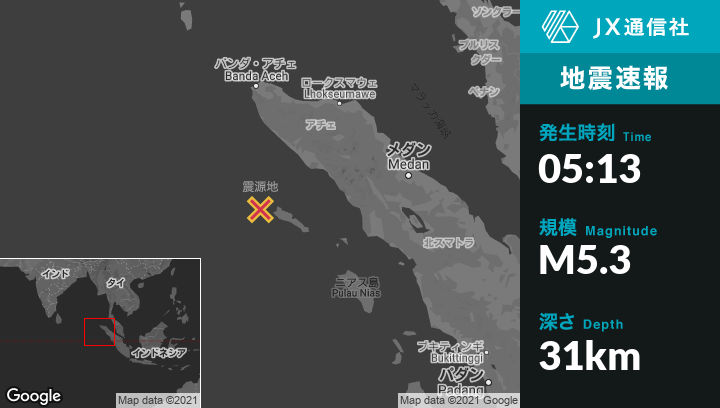 | 震源地 | インドネシアのSinabangから西北西120kmの地点 |