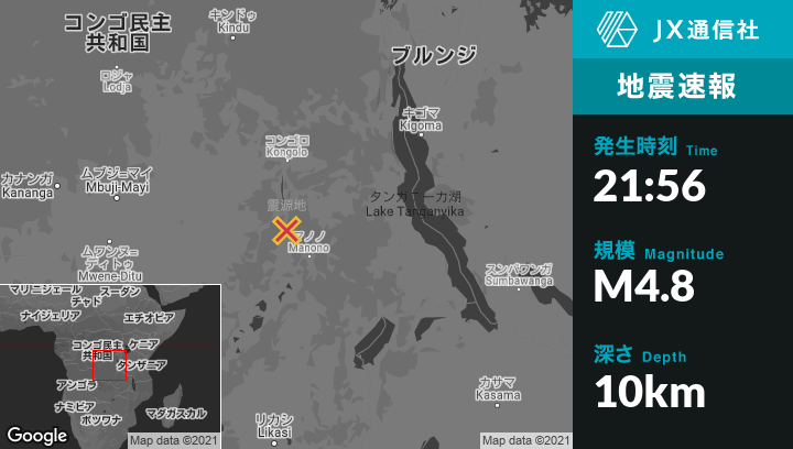 | 震源地 | コンゴ民主共和国のKabaloから南68kmの地点 |