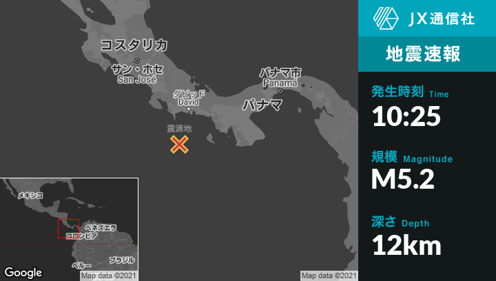 | 震源地 | パナマのBuricaから南69kmの地点 |
