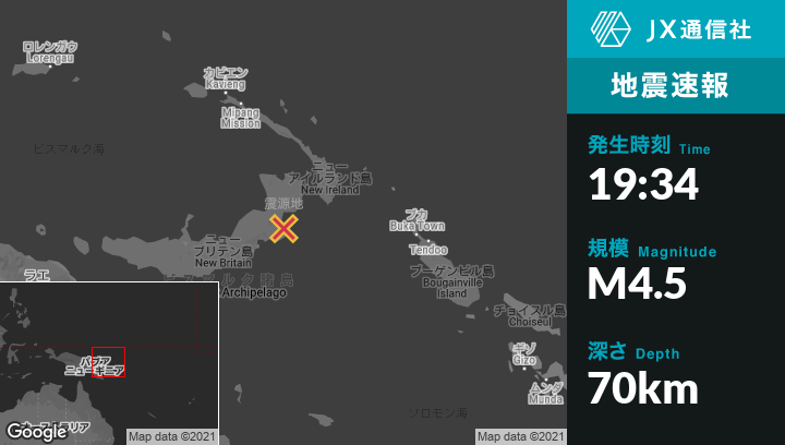| 震源地 | パプアニューギニアのKokopoから南南西98kmの地点 |