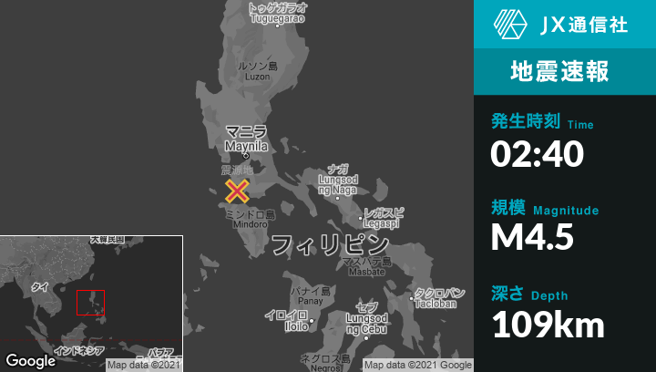 | 震源地 | フィリピンのBalayanから南南東5kmの地点 |