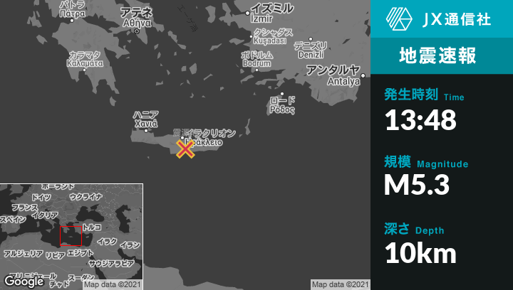 | 震源地 | ギリシャのArkalochóriから西北西4kmの地点 |