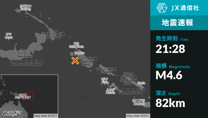 | 震源地 | パプアニューギニアのPangunaから西100kmの地点 |