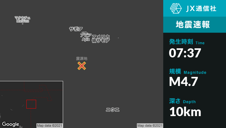 | 震源地 | トンガのHihifoから東186kmの地点 |