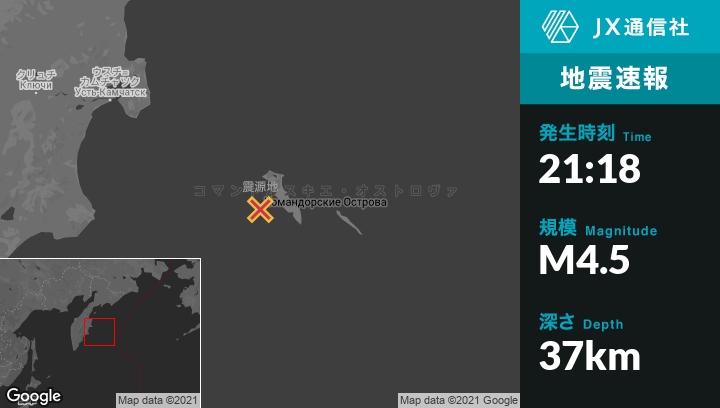 | 震源地 | ロシアのUst’-Kamchatsk Staryyから南東252kmの地点 |