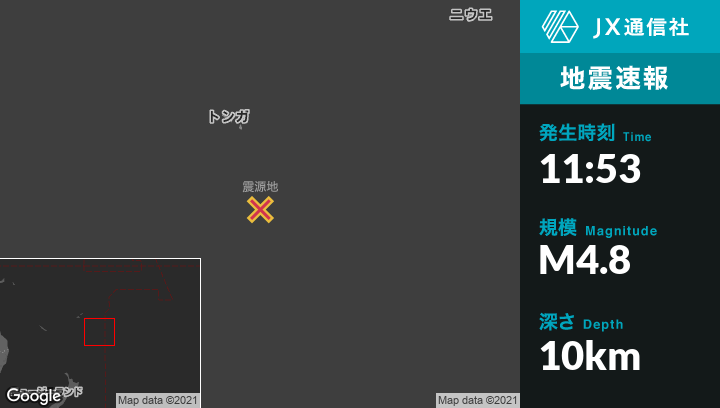 | 震源地 | トンガの‘Ohonuaから南南東183kmの地点 |