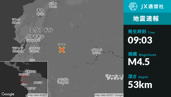 | 震源地 | ペルーのAlianza Cristianaから北36kmの地点 |
