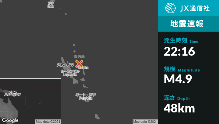 | 震源地 | バヌアツのPort-Olryから東83kmの地点 |