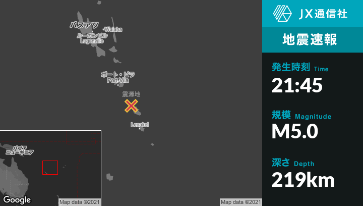 | 震源地 | バヌアツのPort-Vilaから南東102kmの地点 |