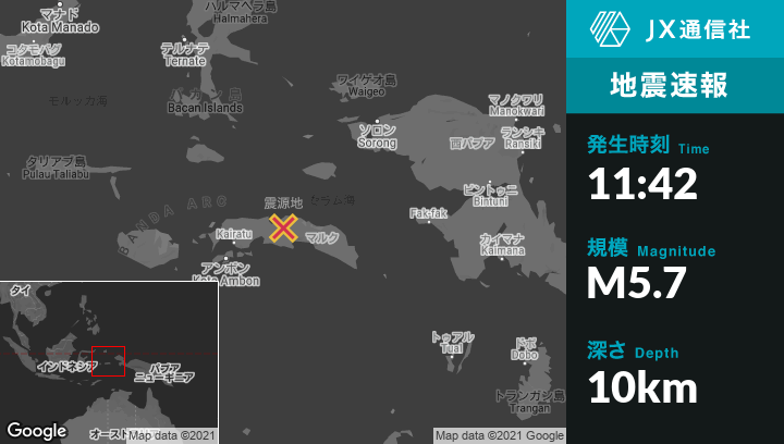 | 震源地 | インドネシアのAmahaiから北東65kmの地点 |