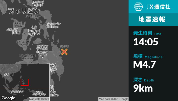 | 震源地 | フィリピンのBacolodから東北東34kmの地点 |