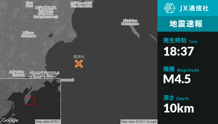 | 震源地 | ロシアのPetropavlovsk-Kamchatskyから東北東251kmの地点 |