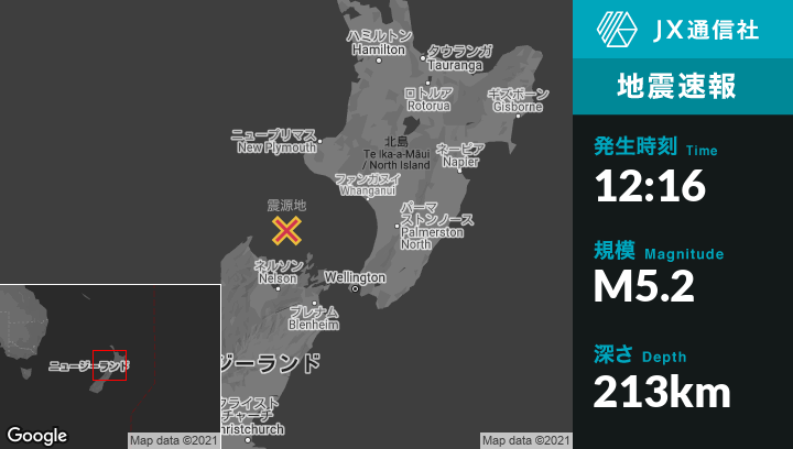 | 震源地 | ニュージーランドのTakakaから北東77kmの地点 |