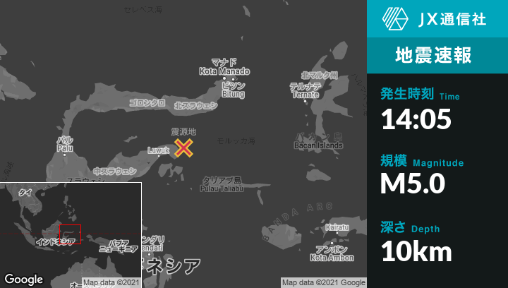 | 震源地 | インドネシアのLuwukから東北東96kmの地点 |