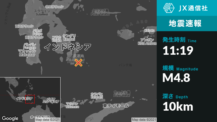 | 震源地 | インドネシアのKatabuから南東90kmの地点 |