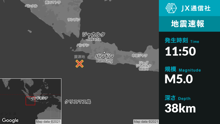 | 震源地 | インドネシアのPelabuhanratuから南西105kmの地点 |