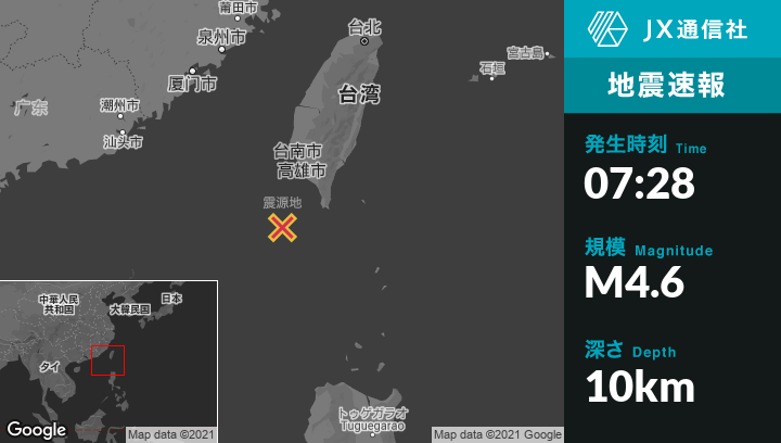 | 震源地 | 台湾のHengchunから西南西93kmの地点 |