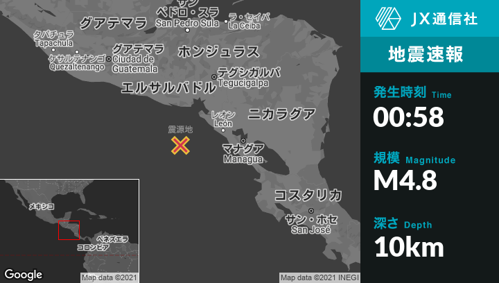 | 震源地 | ニカラグアのJiquililloから南西112kmの地点 |