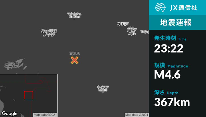 | 震源地 | トンガのHihifoから西255kmの地点 |