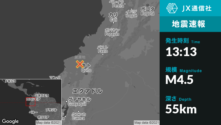 | 震源地 | エクアドルのRosa Zarateから東北東67kmの地点 |