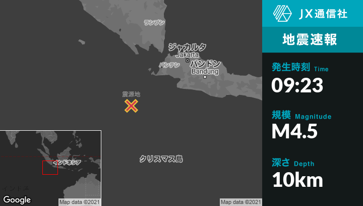 | 震源地 | インドネシアのLabuanから南西241kmの地点 |