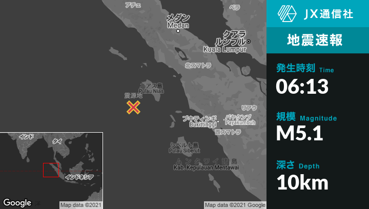 | 震源地 | インドネシアのSinabangから南229kmの地点 |