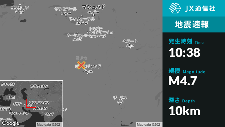11月28日 10:38頃、イランのQā’enから南西50kmの地点でM4.7の地震がありました。