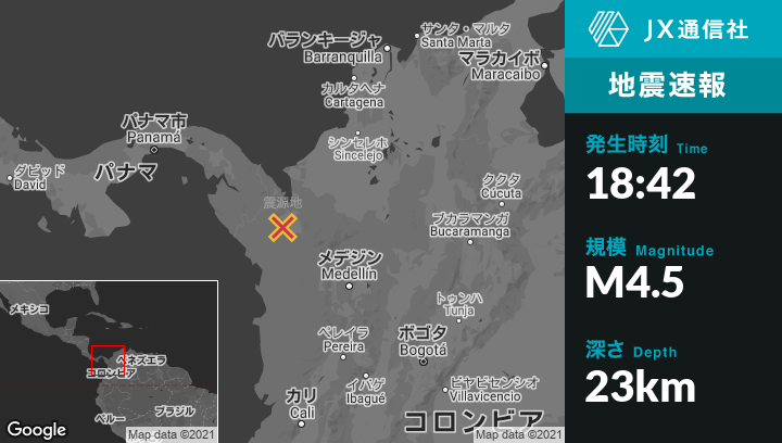 | 震源地 | コロンビアのRiosucioから東北東24kmの地点 |