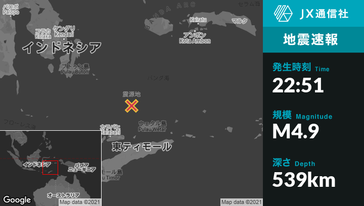 | 震源地 | 東ティモールのMetinaroから北198kmの地点 |