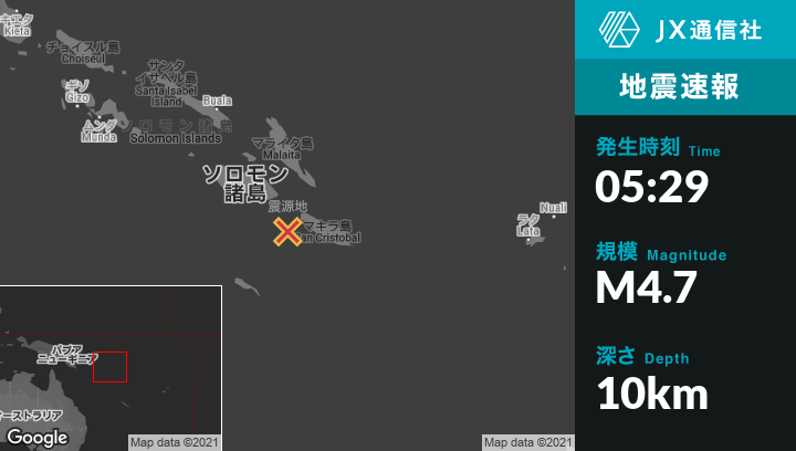 | 震源地 | ソロモン諸島のKirakiraから西98kmの地点 |
