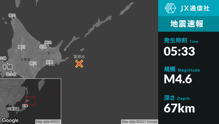 | 震源地 | ロシアのShikotanから南南西74kmの地点 |