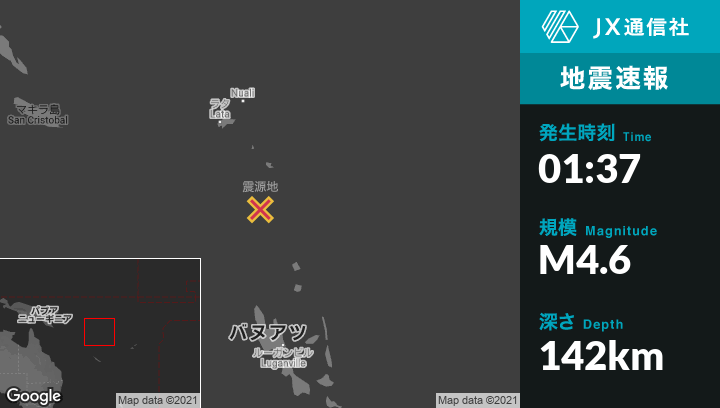 | 震源地 | バヌアツのSolaから北北西179kmの地点 |