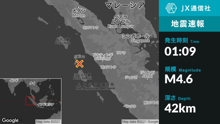 | 震源地 | インドネシアのPariamanから西156kmの地点 |