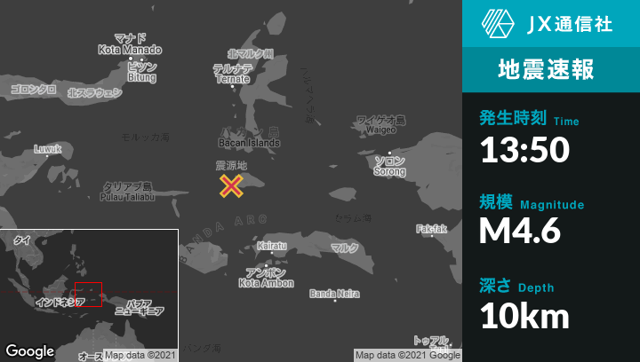 | 震源地 | インドネシアのSofifiから南254kmの地点 |