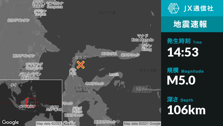 | 震源地 | インドネシアのPaluから北北東122kmの地点 |