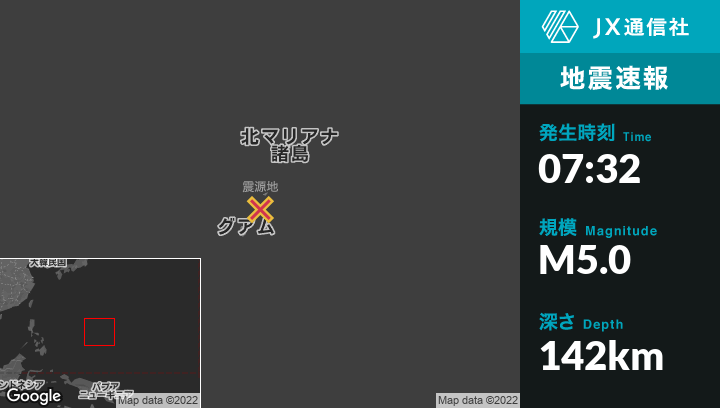 | 震源地 | グアムのYigo Villageから北北東48kmの地点 |