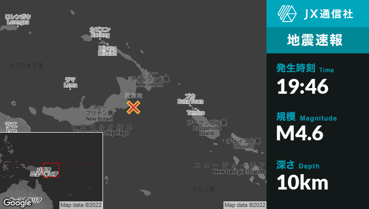 | 震源地 | パプアニューギニアのKokopoから南115kmの地点 |