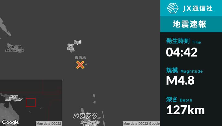 | 震源地 | ソロモン諸島のLataから南東118kmの地点 |