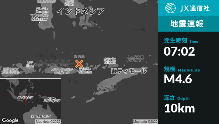| 震源地 | インドネシアのMaumereから北68kmの地点 |
