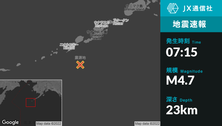 | 震源地 | アラスカのNikolskiから南東81kmの地点 |